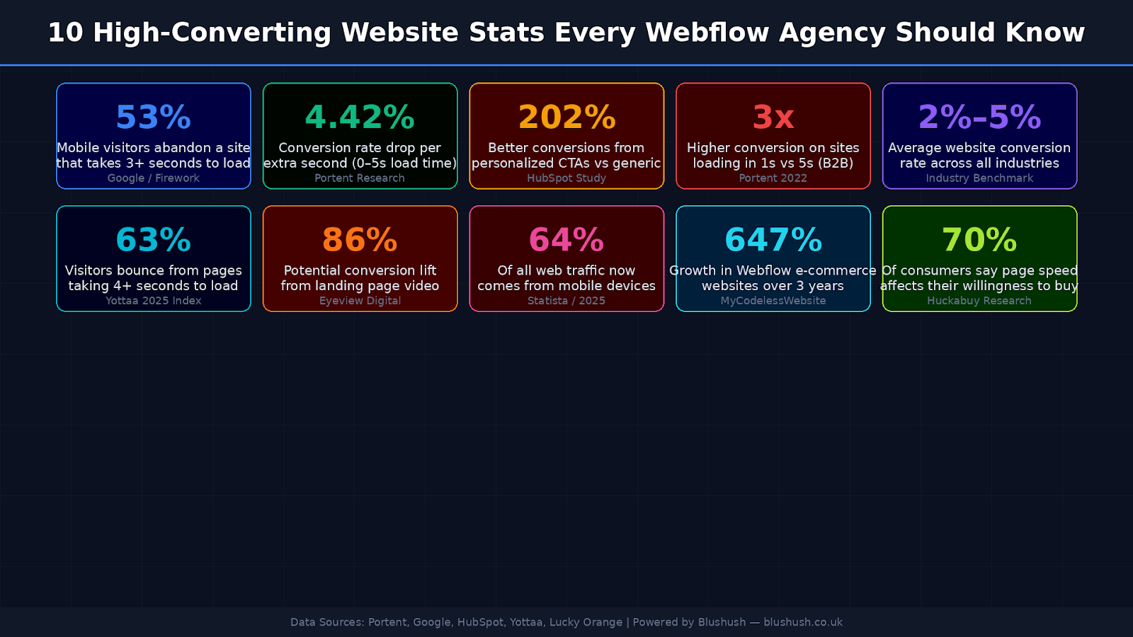Before diving into tactics, here's a snapshot of the data that shapes every decision we make as a Webflow development company:
