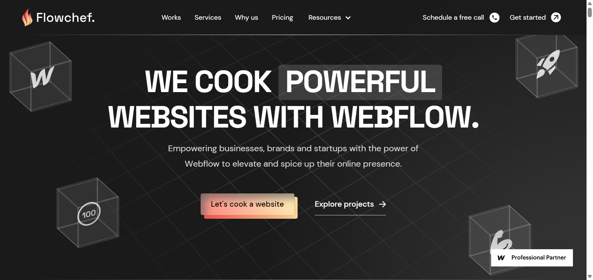 Flowchef focuses on building custom Webflow sites with precision, emphasizing site speed, SEO, and technical functionality. They excel at converting Figma or Adobe XD designs into Webflow, making them an ideal partner if you already have a vision and need expert execution.