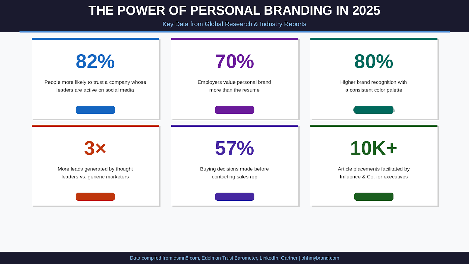 The research backs this up. According to dsmn8.com, 82% of people are more likely to trust a company whose senior executives are active on social media. And nearly 70% of employers now value a candidate's personal brand more than their resume, according to LinkedIn's own surveys.