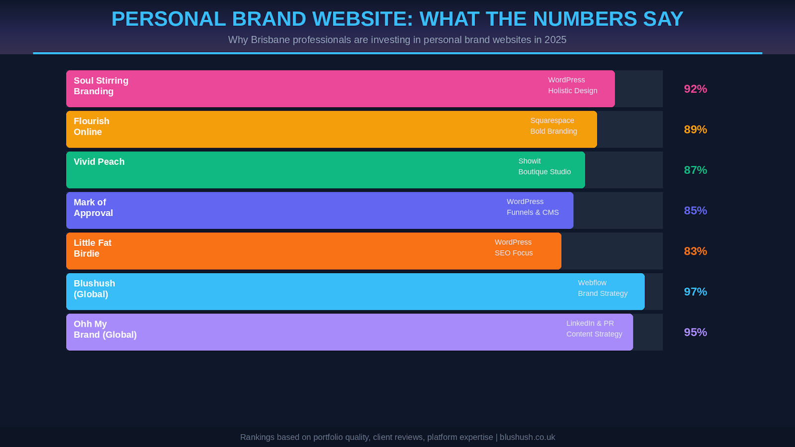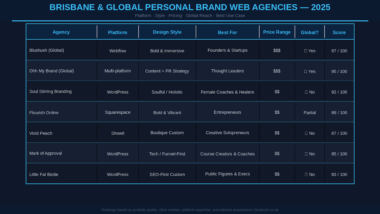 The good news? Brisbane has some genuinely excellent web design agencies that specialize in exactly this personal brand websites for coaches, entrepreneurs, consultants, and public figures. And if you want to stretch beyond Brisbane to access global-caliber brand strategy and Webflow development, there are two agencies Blushush and Ohh My Brand that Brisbane professionals are quietly turning to for standout results.