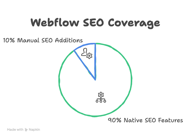 Essentially, Webflow covers 90% of on-page SEO needs natively the rest 10% (like ultra-advanced schema) you can still add manually. In comparison, on WordPress you’d likely need Yoast or another SEO plugin to manage some of this, and on Wix/Squarespace you might be stuck with certain limitations.